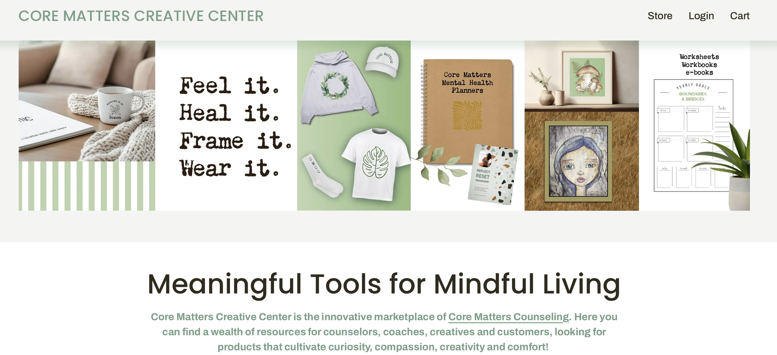 We want to get as many mental health resources into the hands of as many people as possible in effort to contribute to a more whole and healthy world! Core Matters Creative Center is the answer to this effort - you can find physical merch, digital worksheets, books, journals and designs that support continued growth & truth about your beloved, CORE self!
